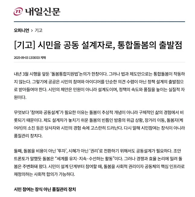 "돌봄은 시혜가 아니라 시민의 권리입니다."