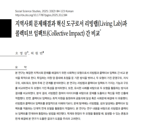 원제: 지역사회 문제해결과 혁신 도구로서 리빙랩(Living Lab)과 콜렉티브 임팩트(Collective Impact) 간 비교