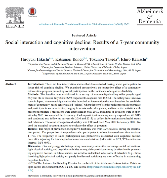 원제: Social interaction and cognitive decline: Results of a 7-year community intervention