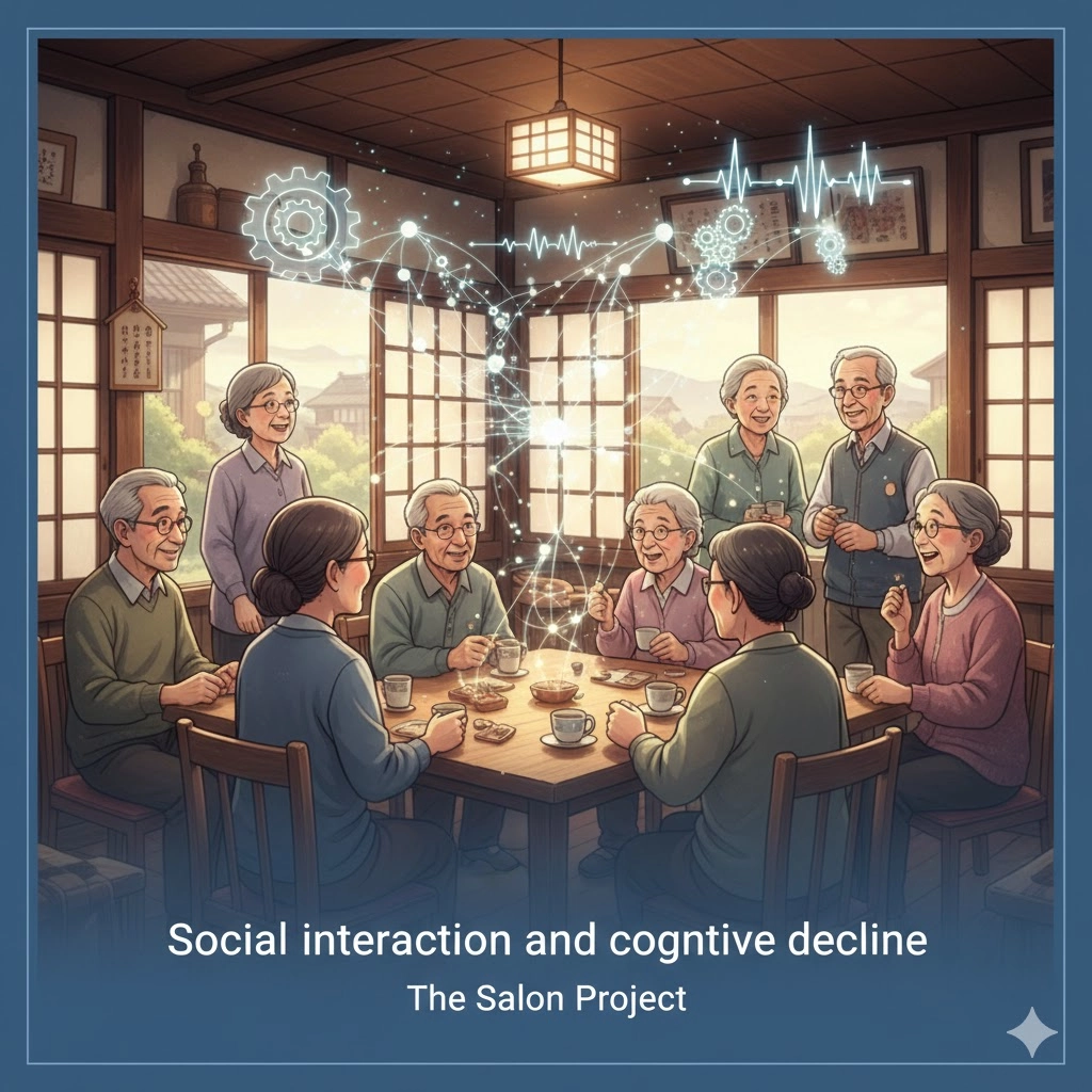 연결 (Connection): 실제 일본 다케토요정에서 7년간 효과를 입증한 '살롱(Salon)' 역시 고도의 의료적 개입이 아니라 춤, 수다, 종이접기, 보드게임, 아이들과의 교류 등 지극히 일상적인 활동들로 구성되어 있었습니다. 논문은 이러한 살롱 참여가 효과를 낸 핵심 메커니즘으로 **'사회적 네트워크의 확장'**과 **'상호 지지(Social support)'**를 꼽습니다. 사람들과 교류하며 삶의 목적의식을 높이고 우울감을 줄이는 일상적인 상호작용 자체가 인지 기능을 보존하는 강력한 보호막 역할을 한 것입니다. 복합적인 사회적 참여를 유도하는 공간의 존재 자체가 인지 저하 예방에 필수적이라는 점을 이 연구가 증명하고 있습니다.