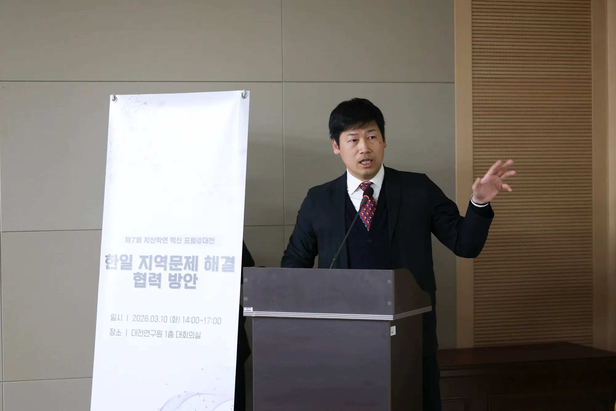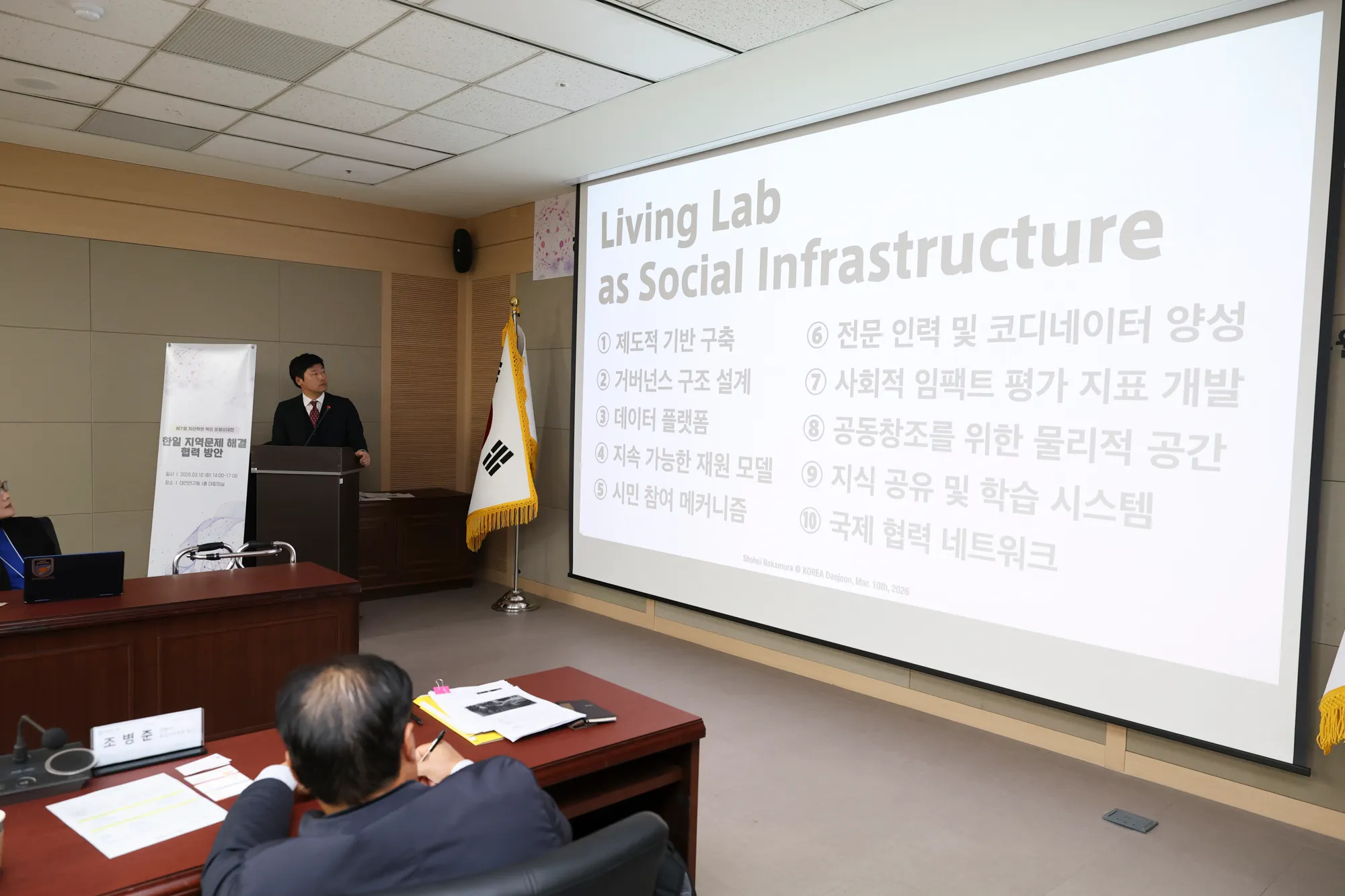 오늘 이 자리는 한국과 일본, 양국의 연구자와 실천가들이 한자리에 모여 '지역 문제 해결'이라는 공통의 과제를 두고 지혜를 나누는 특별한 시간이 될 것 같습니다."
